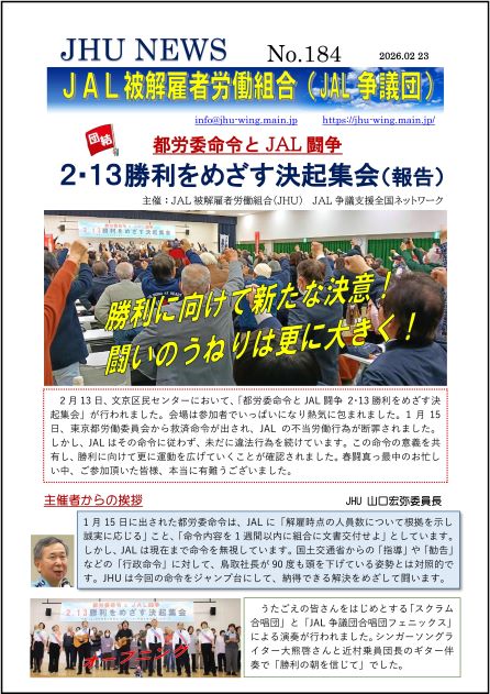 JAL被解雇者労働組合(JHU)山﨑書記長