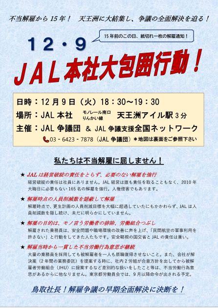 JAL本社大包囲行動/主催:JAL不当解雇撤回争議団・JAL争議支援全国ネットワーク