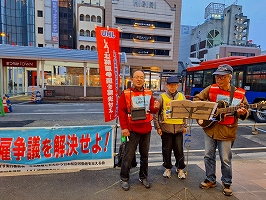 12月9日は解雇通知日。15年前の怒りを忘れない!本社前宣伝と連帯して愛媛の支援者と怒りの宣伝。労働者の誇りと空の安全をかけて。
