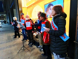1月20日恒例の浦和駅東口宣伝です。今回はさいたま合唱団に東京うたごえの皆さんも加わり、いつもにも増して浦和駅にうたごえが響き渡りました。家路を急ぐ方も、しばし横断幕を眺め、チラシを受け取ってくれました。